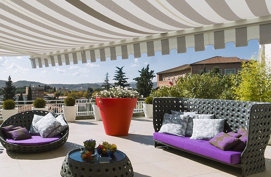 Muchos elegimos la terraza para tomar el sol, pero también queremos crear momentos de sombra si queremos comer o tomar algo en la terraza y el calor es excesivo. Al carecer de espacio, la mejor opción es un toldo anclado a la pared.