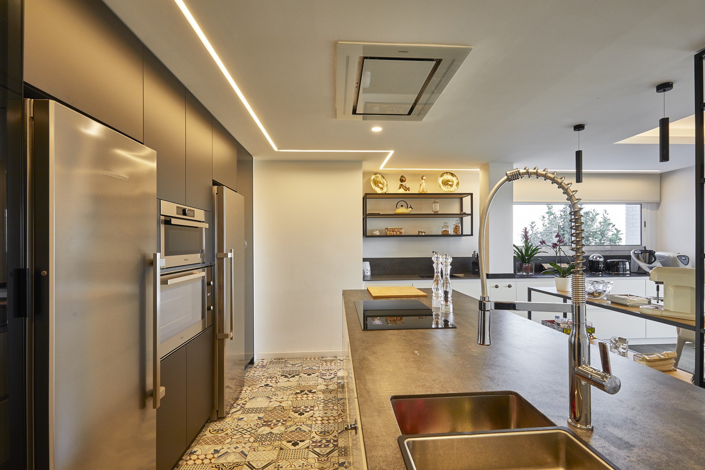 En cuanto a la encimera, a nosotros nos gusta apostar por la porcelana. En Alella House elegimos una encimera Neolith, muebles de la marca Rekker y una campana integrada en el techo. Esto último es importante para ayudar a que la cocina se integre con el resto de la casa y darle una imagen más elegante.